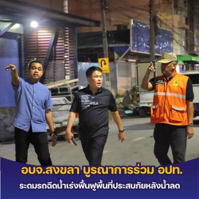 อบจ.สงขลา บูรณาการร่วม อปท. ระดมรถฉีดน้ำ เร่งฟื้นฟูพื้นที่ประสบภัยหลังน้ำลด