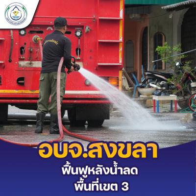 อบจ.สงขลา บูรณาการร่วม อปท. ระดมรถฉีดน้ำ เร่งฟื้นฟูพื้นที่ประสบภัยหลังน้ำลด พื้นที่เขต 3