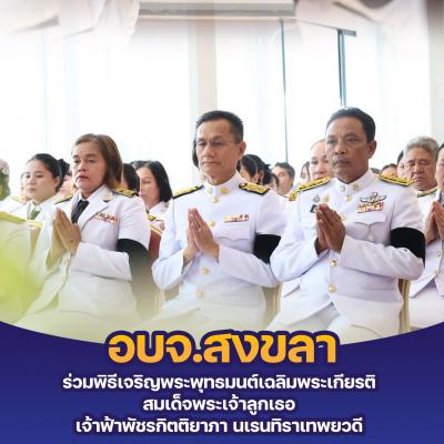 อบจ.สงขลา ร่วมพิธีเจริญพระพุทธมนต์เฉลิมพระเกียรติ สมเด็จพระเจ้าลูกเธอ เจ้าฟ้าพัชรกิตติยาภา นเรนทิราเทพยวดี เนื่องในวันคล้ายวันประสูติ