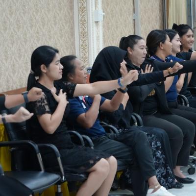 นายกฯ สุพิศ กล่าวเปิดกิจกรรม และให้โอวาทแก่บุคลากรทางการศึกษา โรงเรียนในสังกัด อบจ.สงขลา หวังให้พัฒนาทักษะให้สร้างสุขภาวะทางจิตเชิงบวก ต่อทั้งตัวครู และนำไปสู่ผู้เรียนต่อไป