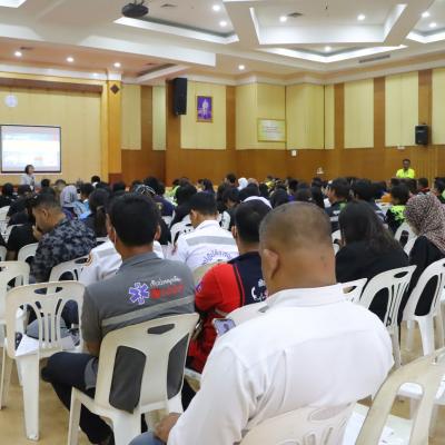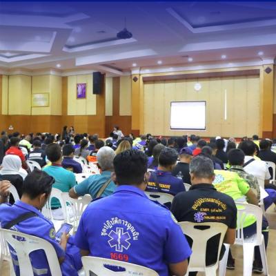 โดยมี นางสาวนาถลดา จิตสุวรรณ์ หัวหน้าศูนย์รับแจ้งเหตุและสั่งการแพทย์ฉุกเฉิน (1669) อบจ.สงขลา // กล่าวรายงาน