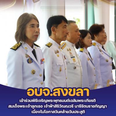 นางสุรียพรรณ์ ณ สงขลา รองนายกองค์การบริหารส่วนจังหวัดสงขลา เข้าร่วมในพิธีเจริญพระพุทธมนต์เฉลิมพระเกียรติ เนื่องในโอกาสวันคล้ายวันประสูติ สมเด็จพระเจ้าลูกเธอ เจ้าฟ้าสิริวัณณวรี นารีรัตนราชกัญญา เข้าร่วมในพิธีฯ