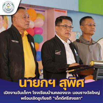 นายกฯ สุพิศ เปิดงานวันเด็กฯ โรงเรียนบ้านคลองแงะ มอบรางวัลใหญ่ พร้อมเชิดชูเกียรติ “เด็กดีศรีสงขลา”