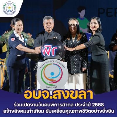 การจัดงานวันคนพิการสากลจังหวัดสงขลา ประจำปี 2568 ภายใต้แนวคิด ”Fostering disability inclusive societies for advancing social progress." "การส่งเสริมสังคมที่ครอบคลุมและเอื้อต่อคนพิการ เพื่อขับเคลื่อนความก้าวหน้าและการพัฒนาทางสังคมอย่างยั่งยืน“ โดยการสนับสนุนงบประมาณจากองค์การบริหารส่วนจังหวัดสงขลา เพื่อสร้างความตระหนักรู้ถึงศักดิ์ศรี สิทธิ และความเสมอภาคของคนพิการ ส่งเสริมการมีส่วนร่วม และขับเคลื่อนการพัฒนาสังคมที่ครอบคลุมคนพิการทุกมิติ ภายในงานประกอบด้วย กิจกรรมการมอบโล่และประกาศเกียรติคุณ การมอบป้ายสนับสนุนการปรับสภาพที่อยู่อาศัยสำหรับคนพิการ การมอบกายอุปกรณ์ การแสดงบนเวที การออกบูธจำหน่ายผลิตภัณฑ์จากฝีมือคนพิการ และการแสดงนิทรรศการ เป็นต้น โดยบรรยากาศตลอดทั้งงานเต็มไปด้วยรอยยิ้มและความสุข