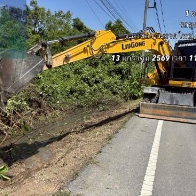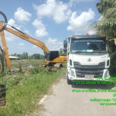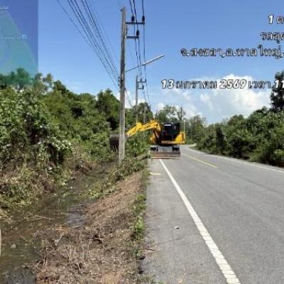 เครื่องจักรกล อบจ.สงขลา ปฏิบัติงานขุดลอกวัชพืช และเศษขยะกีดขวางคู คลอง และปรับพื้นที่