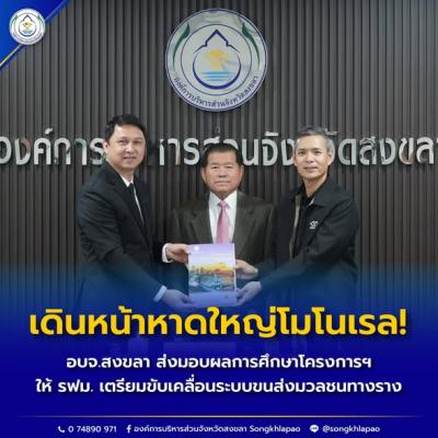 เดินหน้าหาดใหญ่โมโนเรล! อบจ.สงขลา ส่งมอบผลการศึกษาโครงการฯ ให้ รฟม. เตรียมขับเคลื่อนระบบขนส่งมวลชนทางราง