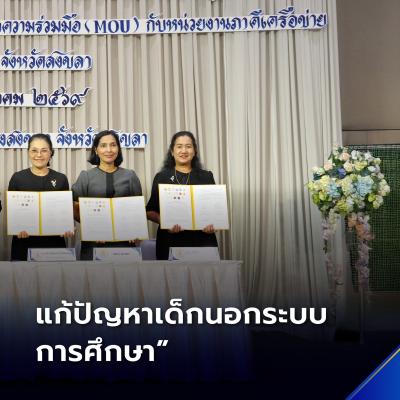 อบจ.สงขลาร่วมขับเคลื่อนแก้ไขปัญหาเด็กและเยาวชนนอกระบบการศึกษา สู่เป้าหมาย “Thailand Zero Dropout” พร้อมลงนาม MOU กับภาคีเครือข่าย