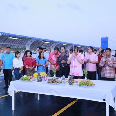 5 กุมภาพันธ์ 2562 นายนิพนธ์ บุญญามณี นายกองค์การบริหารส่วนจังหวัดสงขลา ปลัด อบจ.สงขลา รองปลัด อบจ.สงขลา คณะผู้บริหาร ผู้อำนวยการกองและเจ้าหน้าที่กองกิจการขนส่ง และกองอื่นๆ ร่วมทำพิธีบรวงสรวงแม่ย่านางเรือแพขนานยนต์ อบจ.10 เพื่อที่จะขอฤกษ์ขอพร ในการนำแพขนานยนต์ อบจ.10 นำออกเป็นเที่ยวปฐมฤกษ์ เพื่ออำนวยความสะดวกให้กับพี่น้องประชาชนในจังหวัดสงขลา ถือเป็นของขวัญชิ้นโบว์แดงอีกชิ้นหนึ่ง ที่อบจ.สงขลา มอบให้กับพี่น้องประชาชนในช่วงเทศกาลตรุษจีน