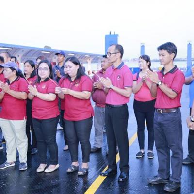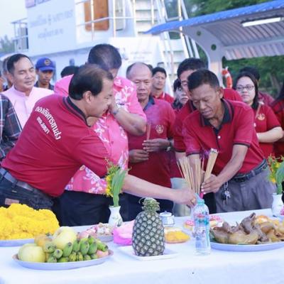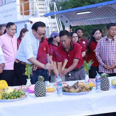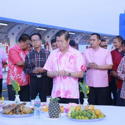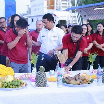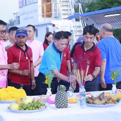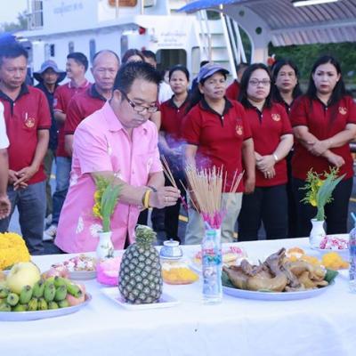 นายก อบจ.สงขลา และคณะ ร่วมทำพิธีบรวงสรวงแม่ย่านางเรือแพขนานยนต์ อบจ.10
