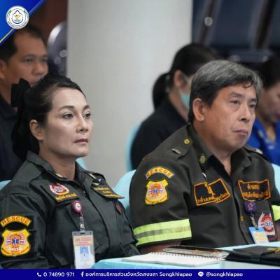 โดยมี นางสาวนาถลดา จิตสุวรรณ พยาบาลวิชาชีพชำนาญการพิเศษ หัวหน้ากลุ่มงานบริการการแพทย์ฉุกเฉิน กอง สาธารณสุข อบจ.สงขลา // กล่าวรายงาน