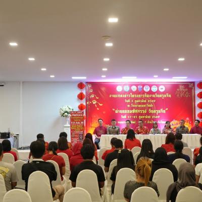 วันที่ 3 กุมภาพันธ์ 2569 นางสุรียพรรณ์ ณ สงขลา รองนายกองค์การบริหารส่วนจังหวัดสงขลา ร่วมการแถลงข่าวโครงการจัดงานวันตรุษจีน ภายใต้แนวคิด “ด่านนอกมหัศจรรย์ วันตรุษจีน” ร่วมกับ นายสาธิต ลิ่ววัฒนะโชตินันท์ นายกเทศมนตรีตำบลสำนักขาม นายคฑาวุธ พิมพ์ศักดิ์ ปลัดอำเภอฝ่ายความมั่นคงอำเภอสะเดา ผู้แทนส่วนราชการและหน่วยงานที่เกี่ยวข้อง ณ ห้องประชุม The Vista Prime ชั้น 1 โรงแรมเดอะวิสต้า ตำบลสำนักขาม อำเภอสะเดา จังหวัดสงขลา