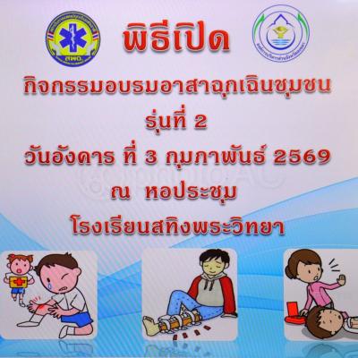 เมื่อวันที่ 3 กุมภาพันธ์ 2569 ณ ห้องประชุมโรงเรียนสทิงพระวิทยา ตำบลจะทิ้งพระอำเภอสทิงพระ จังหวัดสงขลา นายสุพิศ พิทักษ์ธรรม นายกองค์การบริหารส่วนจังหวัดสงขลา มอบหมายให้ นายอภิชัย เกื้อก่อบุญ รองปลัดองค์การบริหารส่วนจังหวัดสงขลา รักษาราชการแทนผู้อำนวยการกองสาธารณสุข เป็นประธานในพิธีเปิดกิจกรรมอบรมอาสาฉุกเฉินชุมชน (อฉช.) รุ่นที่ 2 พร้อมด้วย นางมยุรี พานชัย ผู้อำนวยการกองการศึกษา ศาสนา และวัฒนธรรม นายไพทูรย์ พิทักษ์ปัทมากรณ์ ผู้อำนวยการโรงเรียนสทิงพระวิทยา นางสาวปรียานุช วรเดช รองผู้อำนวยการโรงเรียนสทิงพระวิทยา คณะวิทยากรจากโรงพยาบาลสงขลา คณะครูและนักเรียน โรงเรียนสทิงพระวิทยา ร่วมในพิธีเปิด โดยมี นางสาวนาถลดา จิตสุวรรณ หัวหน้ากลุ่มงานบริการการแพทย์ฉุกเฉิน กล่าวรายงาน