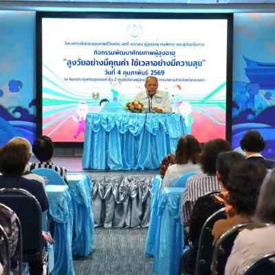 วันที่ 4 กุมภาพันธ์ 2569 ณ ห้องประชุมติณสูลานนท์ ชั้น 2 ศูนย์บริบาลผู้สูงอายุ องค์การบริหารส่วนจังหวัดสงขลา นายสุพิศ พิทักษ์ธรรม นายกองค์การบริหารส่วนจังหวัดสงขลา มอบหมายให้ นายวิญญ์ สิทธิเชนทร์ ผู้เชี่ยวชาญพิเศษด้านการวางแผนยุทธศาสตร์และแผนพัฒนาท้องถิ่น องค์การบริหารส่วนจังหวัดสงขลา เป็นประธานในพิธีเปิด โครงการพัฒนาคุณภาพชีวิตเด็ก สตรี เยาวชน ผู้สูงอายุ ผู้พิการ และผู้ด้อยโอกาส กิจกรรมพัฒนาศักยภาพผู้สูงอายุ “สูงวัยอย่างมีคุณค่า ใช้เวลาอย่างมีความสุข” พร้อมด้วย นางสาวภัคชุดา วันเพ็ชชา หัวหน้าฝ่ายส่งเสริมสวัสดิการสังคม นายนิยม ชูชื่น นายกสมาคมเครือข่ายสุขภาพผู้สูงอายุจังหวัดสงขลา ผู้เข้าร่วมกิจกรรม และเจ้าหน้าที่ที่เกี่ยวข้อง ร่วมในพิธีเปิด โดยมี นางสาวพิมพ์อร เทวรักษ์ ผู้อำนวยการกองสวัสดิการสังคม กล่าวรายงาน
