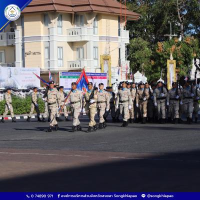 วันที่ 10 กุมภาพันธ์ 2569 นางสุรียพรรณ์ ณ สงขลา รองนายกองค์การบริหารส่วนจังหวัดสงขลา ร่วมเป็นเกียรติในพิธีชุมนุมผู้บังคับบัญชา เจ้าหน้าที่ และสมาชิกกองอาสารักษาดินแดน กองบังคับการกองอาสารักษาดินแดนจังหวัดสงขลา ณ บริเวณถนนราชดำเนิน หน้าศาลากลางจังหวัดสงขลา