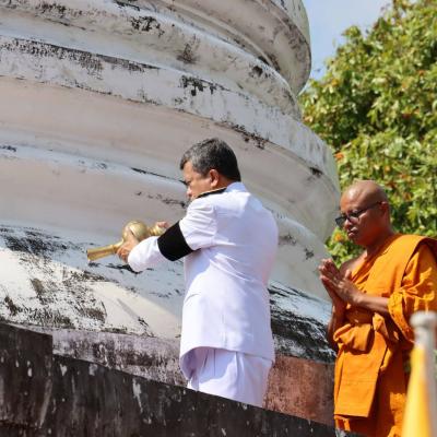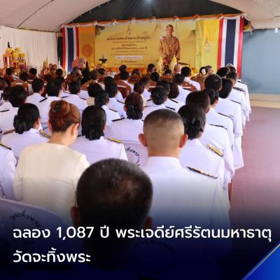 พระบาทสมเด็จพระเจ้าอยู่หัว ทรงพระกรุณาโปรดเกล้า พระราชทานน้ำสรงพระเจดีย์ศรีรัตนมหาธาตุ 1,087 ปี เพื่อถวายเป็นพุทธบูชา และถวายพระราชกุศล เนื่องในวันมาฆบูชา ณ วัดจะทิ้งพระ จังหวัดสงขลา