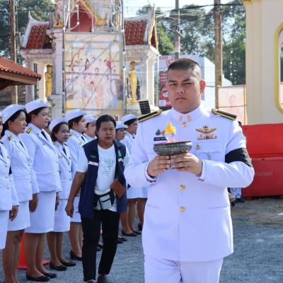 โดยพิธีเริ่มต้นด้วยการเชิญน้ำสรง พระราชทานประดิษฐานเบื้องหน้าพระบรมฉายาลักษณ์ จากนั้นผู้ว่าราชการจังหวัดสงขลาจุดเทียนบูชาพระรัตนตรัย ถวายความเคารพ และเปิดกรวยสักการะพระบรมฉายาลักษณ์พระบาทสมเด็จพระเจ้าอยู่หัว ก่อนอาราธนาศีล เจริญพระพุทธมนต์โดยพระสงฆ์สมณศักดิ์จำนวน 10 รูป เจ้าอาวาสวัดจะทิ้งพระนำกล่าวบูชาพระเจดีย์ศรีรัตนมหาธาตุ ต่อจากนั้นประธานในพิธีได้ประกอบพิธีสรงน้ำ พระราชทาน ห่มผ้าพระเจดีย์ศรีรัตนมหาธาตุ และกราบสักการะ พระเชตุพนพุทธไสยาสน์ หรือ “พ่อเฒ่านอน” เป็นพระพุทธรูปปางสีหไสยาสน์ (ปางอนุฏฐานไสยาสน์) พร้อมด้วยข้าราชการชั้นผู้ใหญ่ร่วมถวายไทยธรรมแด่พระสงฆ์ และเสร็จสิ้นพิธีด้วยการกรวดน้ำ อนุโมทนา และให้พร โดยภายหลังพิธี เจ้าอาวาสวัดจะทิ้งพระ พร้อมพระภิกษุสงฆ์ ผู้ว่าราชการจังหวัดสงขลา และหัวหน้าส่วนราชการได้นำพุทธศาสนิกชนจากทุกภาคส่วนร่วมกิจกรรมเวียนเทียนเนื่องในวันมาฆบูชา เพื่อสืบสานประเพณีสำคัญทางพระพุทธศาสนา และแสดงความสำนึกในพระมหากรุณาธิคุณอย่างสุดซึ้ง