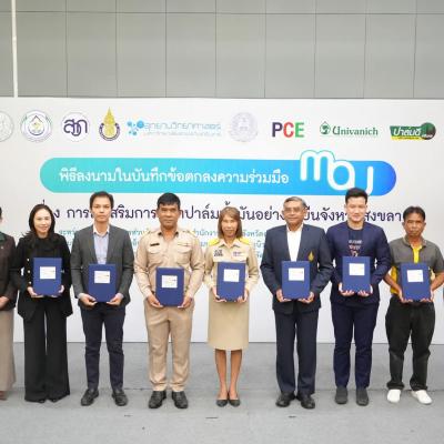 เดินหน้าพัฒนาเกษตรยั่งยืน อบจ.สงขลา ลงนาม MOU ส่งเสริมการผลิตปาล์มน้ำมัน ต่อยอดนโยบายพลิกนาร้างเป็นสวนปาล์ม