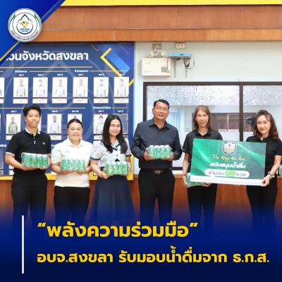 วันที่ 19 มีนาคม 2569 ที่บริเวณโถง ชั้น 1 องค์การบริหารส่วนจังหวัดสงขลา ตำบลพะวง อำเภอเมืองสงขลา จังหวัดสงขลา นางสุรียพรรณ์ ณ สงขลา รองนายกองค์การบริหารส่วนจังหวัดสงขลา พร้อมด้วย นายทวีศักดิ์ อรัญดร ประธานสภาองค์การบริหารส่วนจังหวัดสงขลา ข้าราชการ และบุคลากรในสังกัด ร่วมรับมอบน้ำดื่ม 300 แพ็ค จาก ธ.ก.ส. สาขาสงขลา นำโดย นางอังสุมาลย์ ณ พัทลุง ผู้จัดการ ธ.ก.ส. สาขาสงขลา เพื่อใช้ในการอำนวยความสะดวกแก่นักกีฬาและเจ้าหน้าที่ตลอดการแข่งขันในโครงการแข่งขันวอลเลย์บอลชายหาด กำหนดจัดขึ้นระหว่างวันที่ 8-10 เมษายน 2569 ณ หาดสมิหลา