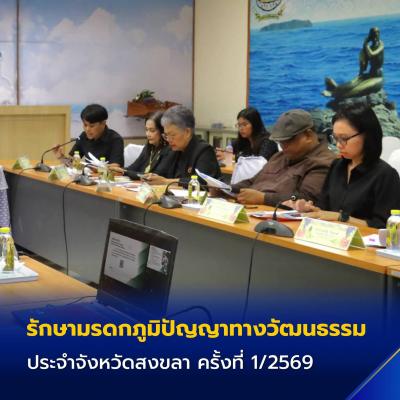 วันที่ 19 มีนาคม 2569 เวลา 13.30 น. ณ ห้องประชุม ชั้น 2 สำนักงานวัฒนธรรมจังหวัดสงขลา อำเภอเมืองสงขลา จังหวัดสงขลา