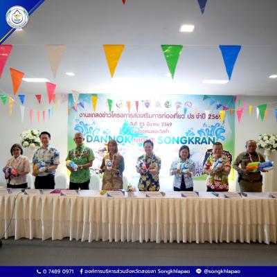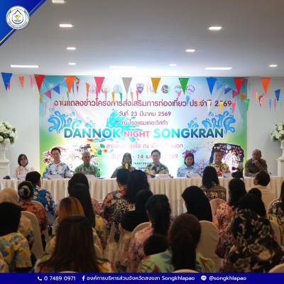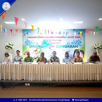 วันที่ 23 มีนาคม 2569 นางสุรียพรรณ์ ณ สงขลา รองนายกองค์การบริหารส่วนจังหวัดสงขลา ร่วมแถลงข่าวการจัดโครงการส่งเสริมการท่องเที่ยว "Dannok Night Songkran" (ด่านนอก) ประจำปี 2569 ร่วมกับ นายสาธิต ลิ่ววัฒนะโชตินันท์ นายกเทศมนตรีตำบลสำนักขาม นายสวัสดิ์ เหมือนแก้ว ปลัดอาวุโส อำเภอสะเดา ผู้แทนส่วนราชการและหน่วยงานที่เกี่ยวข้อง ณ ห้องประชุม ชั้น 1 โรงแรมเดอะวิสต้า หมู่ที่ 7 ตำบลสำนักขาม อำเภอสะเดา จังหวัดสงขลา