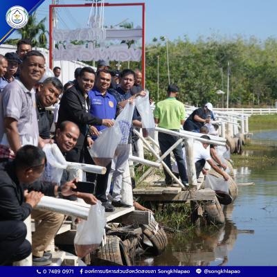 อบจ.สงขลา ปล่อยพันธุ์กุ้งก้ามกราม 1,000,000 ตัว ณ อ่างเก็บน้ำปลักอ่างทอง ฟื้นฟูระบบนิเวศและสร้างรายได้ให้ชาวนาทวี