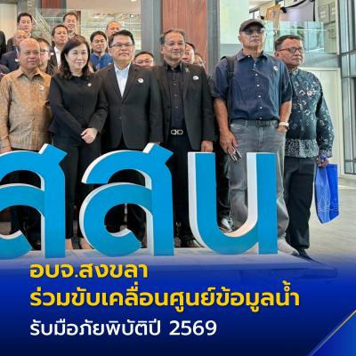 วันพุธที่ 25 มีนาคม 2569 เวลา 08.30 น. ณ สถาบันสารสนเทศทรัพยากรน้ำ (องค์การมหาชน) อาคารเลขที่ 901 ถนนงามวงศ์วาน แขวงลาดยาว เขตจตุจักร กรุงเทพมหานคร นายสุพิศ พิทักษ์ธรรม นายกองค์การบริหารส่วนจังหวัดสงขลา และนางสาวภพภร ทองคณารักษ์ ผู้อำนวยการกองผังเมือง เข้าร่วมประชุมเตรียมความพร้อมองค์การบริหารส่วนจังหวัด เพื่อขับเคลื่อนศูนย์ข้อมูลน้ำระดับจังหวัด รับมือสถานการณ์น้ำท่วม - ภัยแล้ง ประจำปี 2569 โดยมีดร.รอยบุญ รัศมีเทศ ผู้อำนวยการสถาบันสารสนเทศทรัพยากรน้ำ และผู้บริหาร ให้การต้อนรับคณะฯ