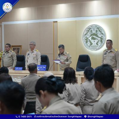 วันที่ 30 มีนาคม 2569 นายรัฐศาสตร์ ชิดชู ผู้ว่าราชการจังหวัดสงขลา เป็นประธานการประชุมคณะกรมการจังหวัด หัวหน้าส่วนราชการ นายอำเภอ หัวหน้าหน่วยงานรัฐวิสาหกิจ และภาคเอกชน ครั้งที่ 3/2569 ประจำเดือนมีนาคม 2569 โดย นายสุพิศ พิทักษ์ธรรม นายกองค์การบริหารส่วนจังหวัดสงขลา มอบหมายให้ นายอภิชัย เกื้อก่อบุญ รองปลัดองค์การบริหารส่วนจังหวัดสงขลา เข้าร่วม ณ ห้องประชุม 1 ชั้น 5 ศาลากลางจังหวัดสงขลา ตำบลบ่อยาง อำเภอเมืองสงขลา จังหวัดสงขลา