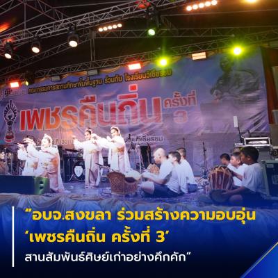 นายสุพิศ พิทักษ์ธรรม นายกองค์การบริหารส่วนจังหวัดสงขลา ร่วมเป็นเกียรติในพิธีเปิดงาน “เพชรคืนถิ่น ครั้งที่ 3” ณ โรงเรียนวิเชียรชม อำเภอเมืองสงขลา จังหวัดสงขลา พร้อมกล่าวพบปะและให้โอวาทแก่ผู้เข้าร่วมงาน ท่ามกลางบรรยากาศที่เต็มไปด้วยความอบอุ่นและความภาคภูมิใจของศิษย์เก่าและผู้มีส่วนเกี่ยวข้อง