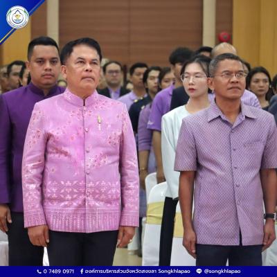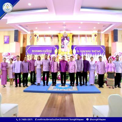 วันที่ 2 เมษายน 2569 เวลา 09.30 น. ณ ห้องประชุม ชั้น 2 อาคารศรีเกียรติพัฒน์ องค์การบริหารส่วนจังหวัดสงขลา นายรัฐศาสตร์ ชิดชู ผู้ว่าราชการจังหวัดสงขลา พร้อมด้วยนายสุพิศ พิทักษ์ธรรม นายกองค์การบริหารส่วนจังหวัดสงขลา และส่วนราชการในจังหวัดสงขลา ร่วมประกอบพิธีวางพานพุ่มทอง–พุ่มเงิน ถวายราชสักการะ กล่าวถวายราชสดุดี และยืนสงบนิ่งเพื่อแสดงความสำนึกในพระมหากรุณาธิคุณ อันเป็นการแสดงออกถึงความจงรักภักดีและความสามัคคีของประชาชนในพื้นที่