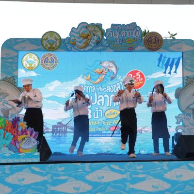 สำหรับงาน“เทศกาลเที่ยวสงขลา กินปลากะพง 3 น้ำ ครั้งที่ 4 " จัดขึ้นระหว่างวันที่ 2 - 5 เมษายน 2569 ณ หาดชลาทัศน์ จังหวัดสงขลา ภายในงานได้จัดให้เกษตรกรและ ผู้ประกอบการในจังหวัดสงขลากว่า 100 ราย มาร่วมออกร้านจัดจําหน่ายเมนูซีฟู้ด และสินค้าอัตลักษณ์ พร้อมทั้งมีกิจกรรมส่งเสริมการขาย นาทีทอง จับสลากลุ้นรางวัล และการสาธิตปรุงอาหารจากเชฟชื่อดัง เพื่อสร้างสีสันและกระตุ้นการจับจ่ายใช้สอย ตลอดการจัดงาน