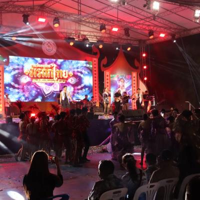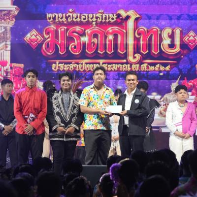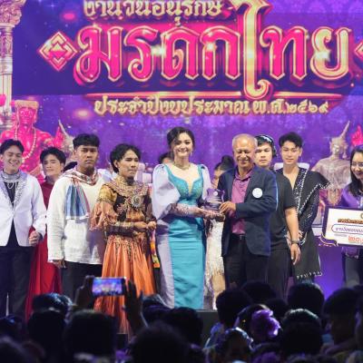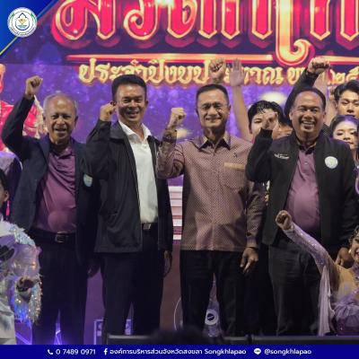 นายสุรสิทธิ์ ศรีอินทร์ ที่ปรึกษานายก อบจ.สงขลา พร้อมด้วย นายพรชัย พานิชกรณ์ รองประธานสภา อบจ.สงขลา, นายวิญญ์ สิทธิเชนทร์ ผู้เชี่ยวชาญพิเศษด้านการวางแผนยุทธศาสตร์และแผนพัฒนาท้องถิ่น และหัวหน้าส่วนราชการ อบจ.สงขลา ร่วมชมการประกวดวงดนตรีลูกทุ่ง ในงานวันอนุรักษ์มรดกไทย ประจำปีงบประมาณ พ.ศ. 2569 พร้อมให้เกียรติในพิธีมอบรางวัลการประกวดฯ