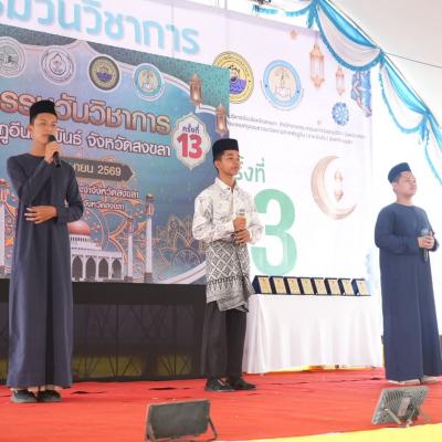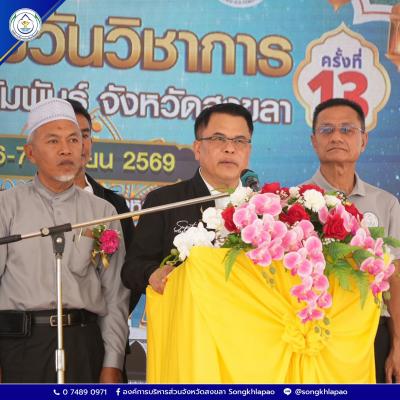 วันที่ 6 เมษายน 2569 นายสุพิศ พิทักษ์ธรรม นายกองค์การบริหารส่วนจังหวัดสงขลา เป็นประธานในพิธีเปิดโครงการมหกรรมวิชาการเปิดโลกการศึกษา ประจำปิงบประมาณ พ.ศ.2569 กิจกรรมการอบรมวันวิชาการฟัรฎูอีนสัมพันธ์ พร้อมด้วยคณะผู้บริหาร หัวหน้าส่วนราชการ และบุคลากรในสังกัด โดยมี นายศักดิ์กรียา บิลแสละ ประธานกรรมการอิสลามประจำจังหวัดสงขลา กล่าวต้อนรับ และนายฮำสะ สายสะหลำ ในนามสมาคมครูสอนศาสนาอิสลามภาคฟัรฎูอีน (ภาคบังคับ) จังหวัดสงขลา กล่าวรายงาน พร้อมด้วย สมาชิกสมาคมครูสอนศาสนาอิสลามภาคฟัรฎูอีน (ภาคบังคับ) จังหวัดสงขลา คณะกรรมการอิสลามประจำจังหวัดสงขลา คณะกรรมการสมาคมฯ คณะครูและนักเรียนจากเขตการศึกษาของสมาคมครูสอนศาสนาอิสลามภาคฟัรฎูอีน (ภาคบังคับ) จังหวัดสงขลา เข้าร่วม ณ มัสยิดกลางประจำจังหวัดสงขลา อำเภอหาดใหญ่ จังหวัดสงขลา