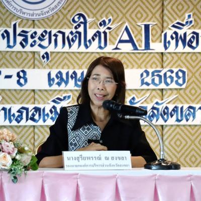 วันที่ 7 เมษายน 2569 นางสุรียพรรณ์ ณ สงขลา รองนายกองค์การบริหารส่วนจังหวัดสงขลา เป็นประธานเปิดการประชุมเชิงปฏิบัติการประยุกต์ใช้ AI เพื่อการจัดการเรียนรู้ ระหว่างวันที่ 7 – 8 เมษายน 2569 ณ โรงแรมวีว่า อำเภอเมืองสงขลา จังหวัดสงขลา โดยมีนางมยุรี พานชัย ผู้อำนวยการกองการศึกษา ศาสนาและวัฒนธรรม กล่าวรายงาน โดยได้รับความอนุเคราะห์จาก นายศุภชัย โชติกิจภิวาทย์ อาจารย์สาขาวิชาเทคโนโลยีดิจิทัลเพื่อการศึกษา และผู้ช่วยคณบดีพัฒนาสื่อและนวัตกรรมการเรียนรู้ยุคดิจิทัล คณะครุศาสตร์ มหาวิทยาลัยราชภัฎนครศรีธรรมราช เป็นวิทยากรให้ความรู้