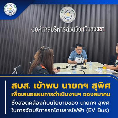 สบส. เข้าพบ นายกฯ สุพิศ เพื่อเสนอแผนการดำเนินงานฯ ของสมาคม ซึ่งสอดคล้องกับนโยบายของ นายกฯ สุพิศ ในการจัดบริการรถโดยสารไฟฟ้า (EV Bus)