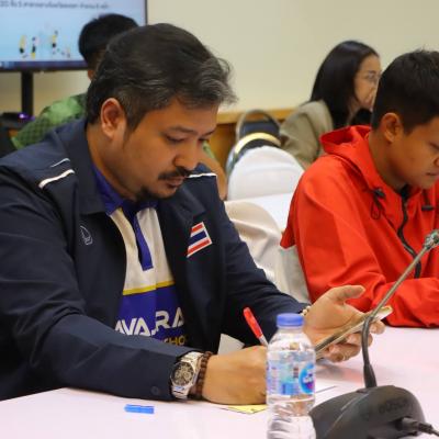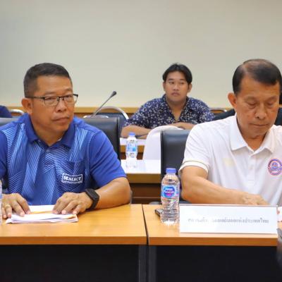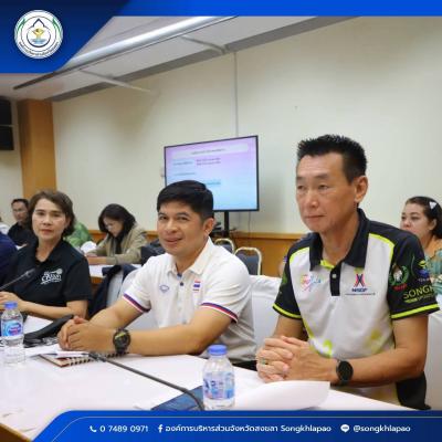พร้อมด้วย เจ้าหน้าที่กองการท่องเที่ยวและกีฬา อบจ.สงขลา คณะกรรมการจัดการแข่งขัน และผู้ที่เกี่ยวข้อง เข้าร่วมการประชุม